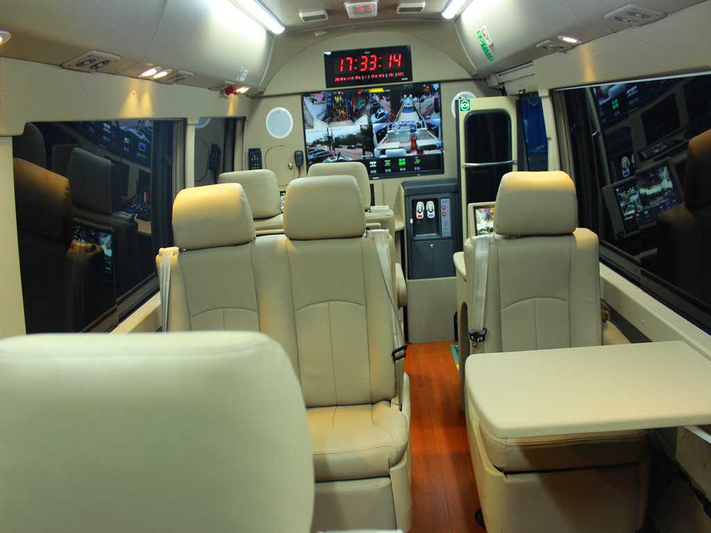 通讯指挥车采用客车底盘改装,集成现场办公、通讯、监控及无线图像传输、广播宣传、强光照明、警示及电源等功能于一体,技术含量高、布置合理、做工精细。车辆既是现场移动指挥中心,又可与指挥调度中心建立通畅通讯,灵活、机动,是公安、武警部门现场应急综合移动指挥车。